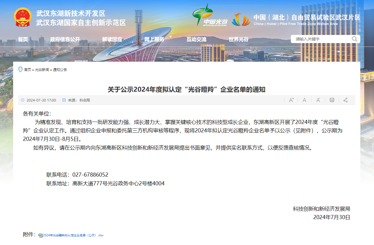 武漢東湖新技術(shù)開發(fā)區(qū)科技創(chuàng)新和新經(jīng)濟(jì)發(fā)展局于7月30日公示了2024年度擬認(rèn)定“光谷瞪羚”企業(yè)名單。此次,新銳科創(chuàng)公司憑借其在高新技術(shù)領(lǐng)域的卓越表現(xiàn)和快速成長(zhǎng)成功入選,展現(xiàn)了公司強(qiáng)大的創(chuàng)新能力和發(fā)展?jié)摿Α?br />