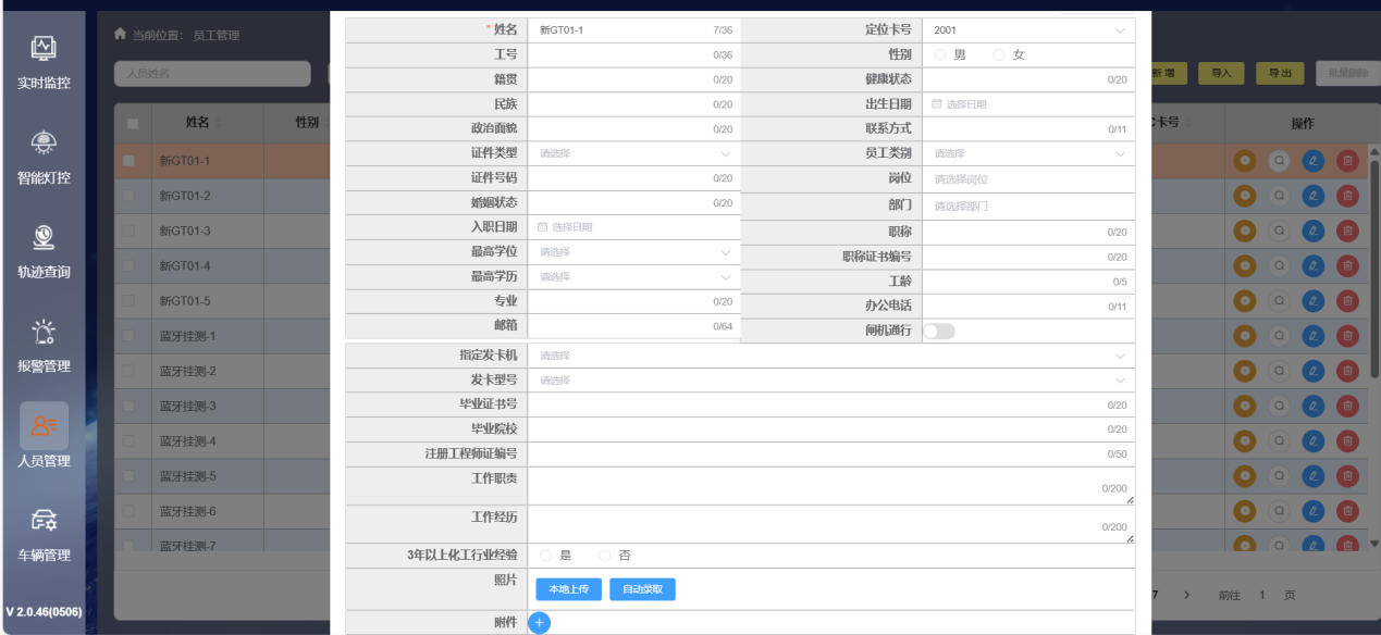 系統(tǒng)具備人員管理和設(shè)備管理功能。在人員管理方面,可新增、導(dǎo)入、修改、刪除人員信息,包括員工、承包商、訪客等不同類型人員,支持批量導(dǎo)入照片、一鍵導(dǎo)出詳細(xì)人員列表等操作,方便企業(yè)進(jìn)行人員信息管理。在設(shè)備管理方面,可對定位卡、定位信標(biāo)等設(shè)備進(jìn)行新增、導(dǎo)入、修改、刪除等操作,實(shí)時監(jiān)測設(shè)備的在線/離線狀態(tài)、電量狀態(tài),確保設(shè)備正常運(yùn)行。
