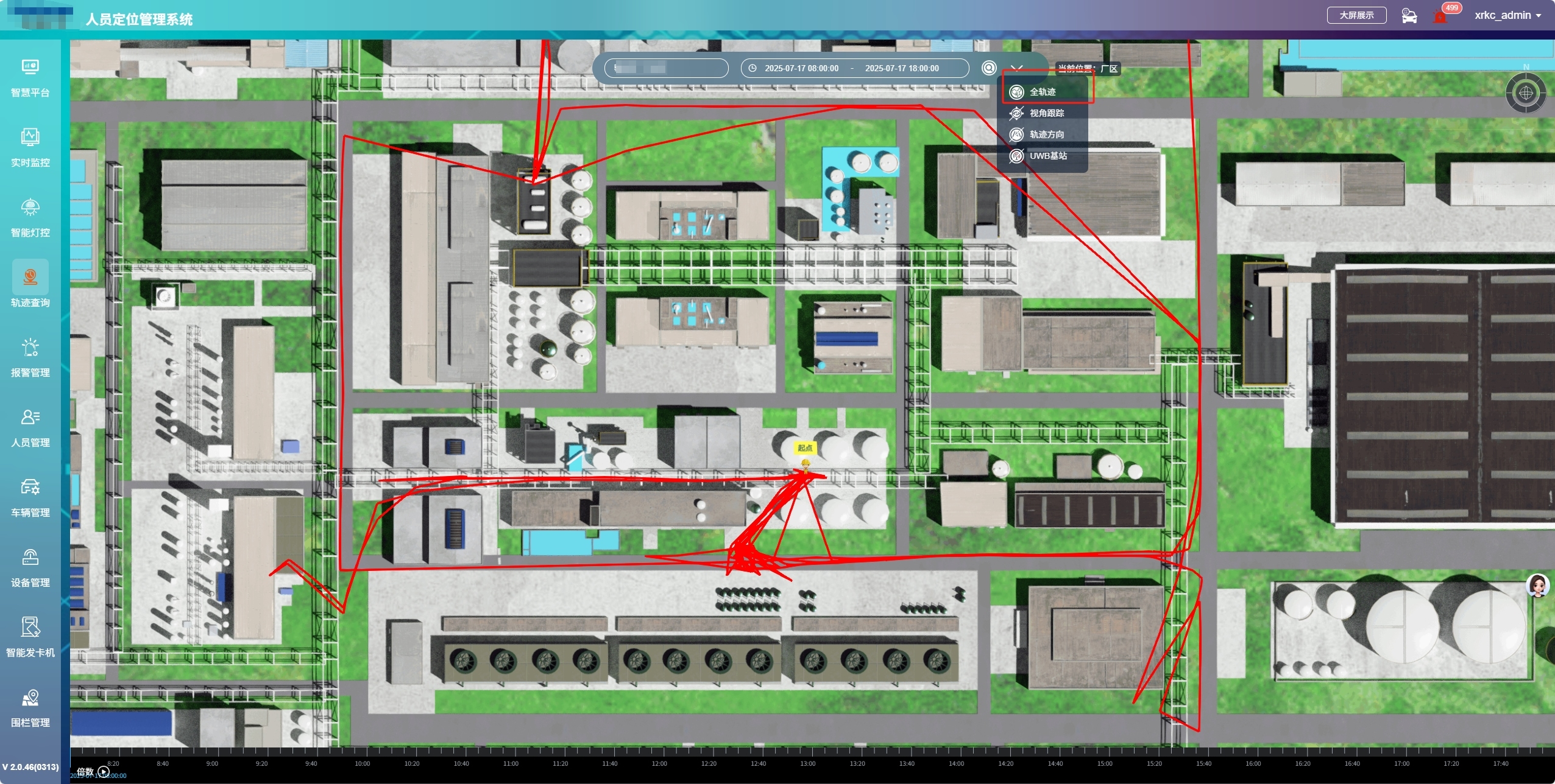 實時定位與追蹤:管理人員可以通過管理平臺實時查看所有人員和車輛在礦山內的位置分布和行動軌跡。在2D或3D電子地圖上,人員和車輛的位置以直觀的圖標形式顯示,方便管理人員快速了解現場情況。通過實時追蹤功能,管理人員能夠隨時掌握重點人員和車輛的動態,及時發現異常情況并采取相應措施。