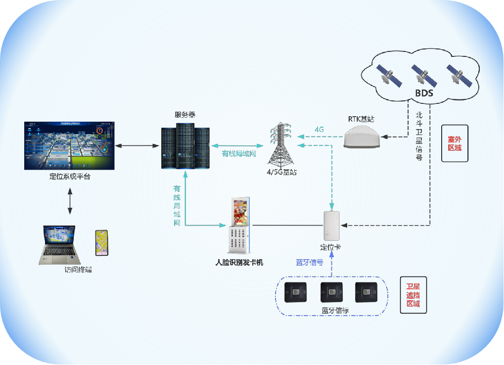 橋梁施工中的一些室內或衛星信號遮擋嚴重區域,如橋梁內部的空心結構、地下基礎施工區域等,衛星信號難以有效覆蓋。此時,藍牙定位技術發揮關鍵作用。系統通過在這些區域的關鍵位置安裝藍牙信標,其周期性發送藍牙廣播。施工人員與車輛攜帶的定位終端掃描并采集藍牙信標的廣播信息,并通過4G網絡將自身信息及整合后的藍牙信標信息傳輸給服務器,實現人員與車輛位置的精確掌握。在橋梁地下樁基施工的鋼筋籠吊裝作業中,工人在鋼筋籠內部及周邊作業,現場環境復雜,衛星信號微弱。藍牙定位技術能夠實時追蹤工人位置,確保工人在狹小空間內安全作業,保障施工安全有序進行。