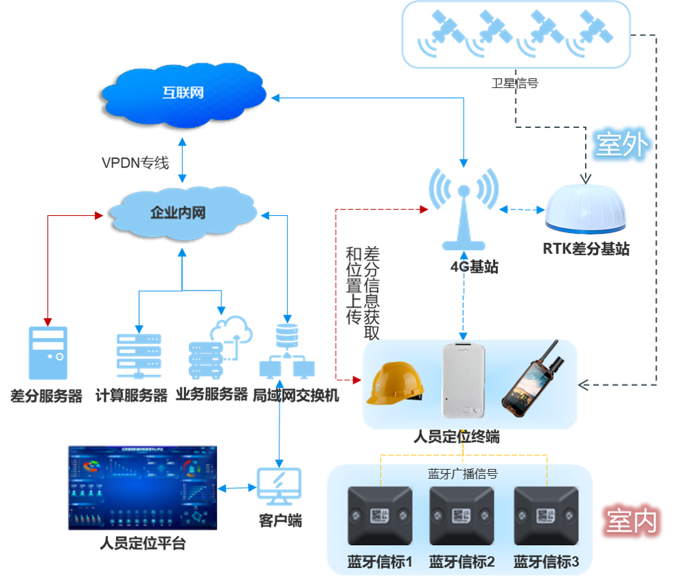 4G+藍(lán)牙+GPS/北斗RTK人員定位系統(tǒng)解決方案