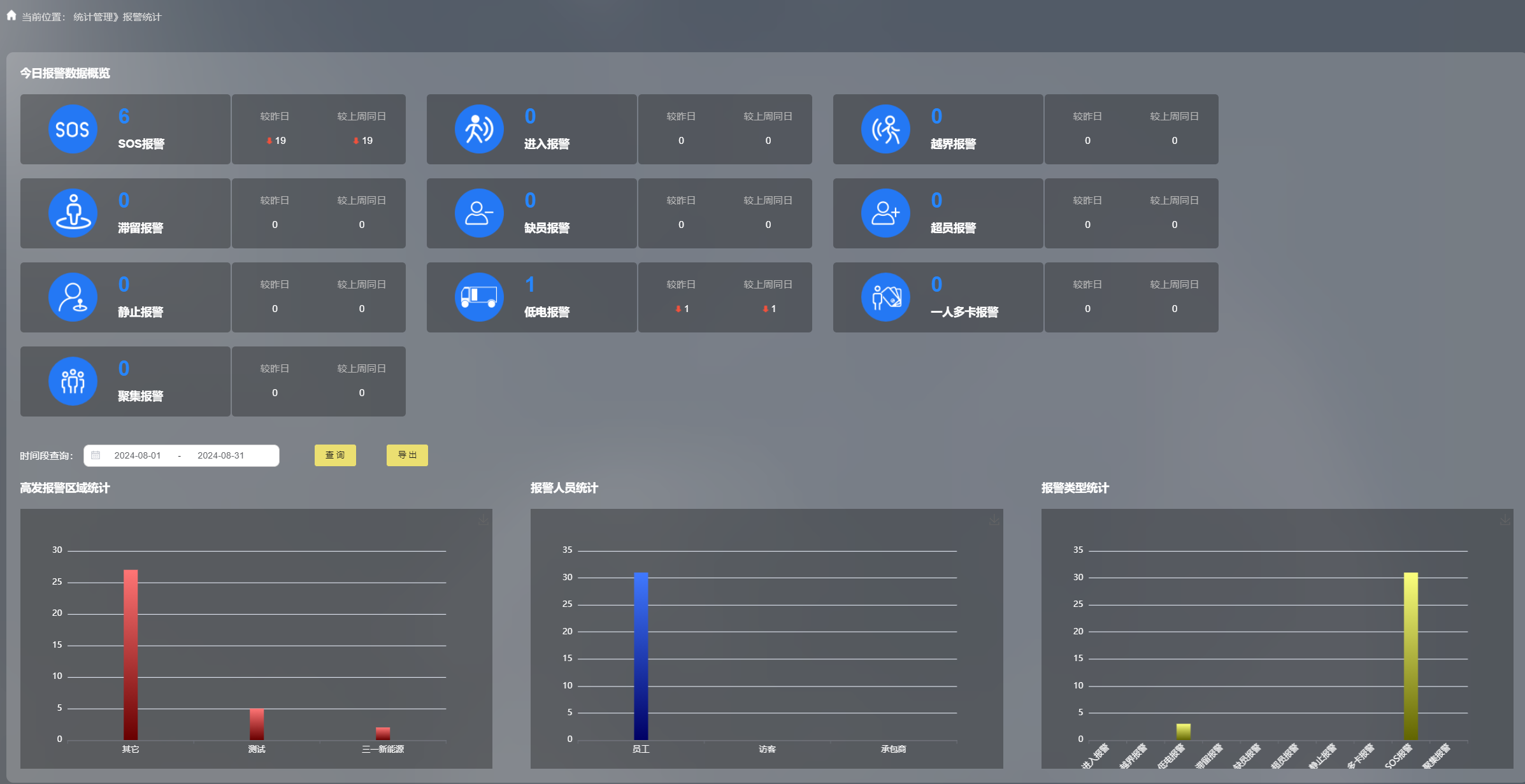 系統(tǒng)提供全面的數(shù)據(jù)報表和可視化工具,以表格、熱力圖等形式展示各區(qū)域人員分布及報警信息等關鍵數(shù)據(jù)。
