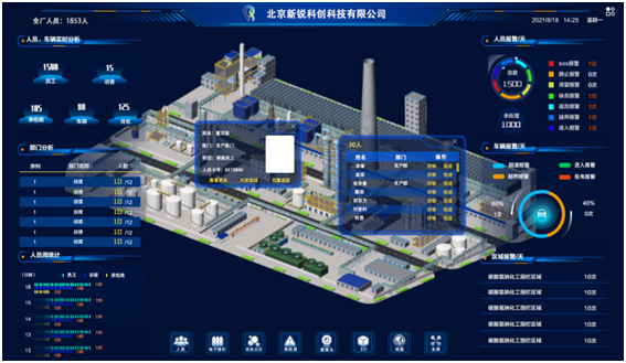 全面展示各區域人員分布及報警信息,各類信息以表格、熱力圖形式展現。
