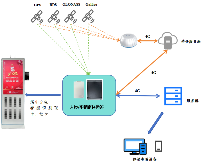 北斗高精度定位卡/車載定位儀:接收北斗衛(wèi)星導航系統(tǒng)經(jīng)緯度數(shù)據(jù),通過4G與差分服務器相連,獲取差分數(shù)據(jù)信息,在卡片結(jié)算出位置信息,通過4G網(wǎng)絡將位置信息回傳到服務器;